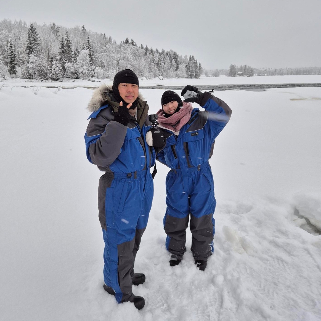 Föredrar du isfiske på Kalixälven tar vi dig genom den vinterklädda skogen till den frusna älven, vid foten av en liten fors. Här borrar vi våra hål i isen och provar lyckan med fisket, medan grillstugan står redo för en lättare måltid vid elden, mitt i vinterns stillhet.